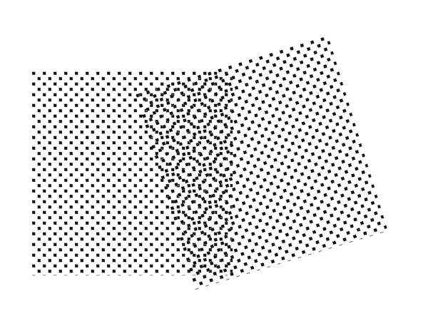 網点と網点を重ね合わせたときに生じる干渉縞のこと。布地の目などの細かい模様を印刷しようとすると、網点と干渉してモアレが生じることがある。